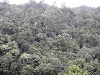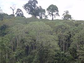 Pioneer Macaranga spp. dominating the burnt forest (before rehabilitation)