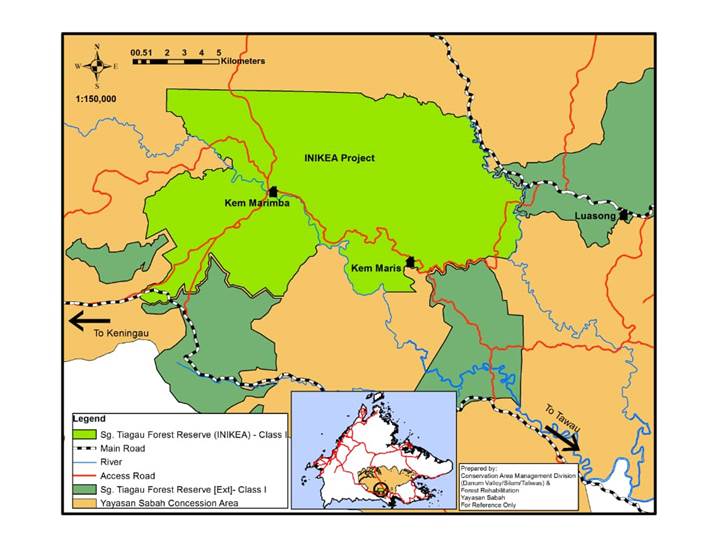 The objective of INIKEA Project is to improve biodiversity and to assist the recovery of degraded forests. The INIKEA project area, a consolidated block of 18,500 ha, is located in the southern part of Yayasan Sabah’s Forest Management Area. INIKEA is now part of the 2012-gazetted Sungai Tiagau Class I Forest Reserve (Protection).