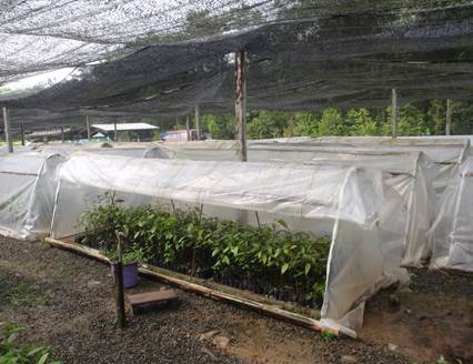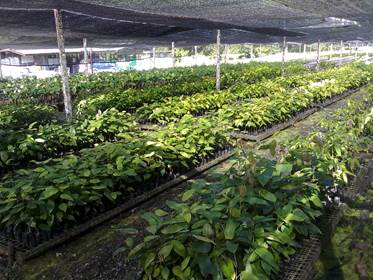 The preparation of planting materials is done at INIKEA Nursery, located at Luasong Forestry Centre, Tawau. There are two plant production methods; propagation by seeds and collection of wildings. Seeds are collected during fruiting seasons, germinated and selectively transplanted into plastic bags for growing. As forest trees do not fruit regularly, we produce planting material by wildings to ensure continuous supply of good planting materials. In order to have a good proportion of species in the nursery, we maintain a composition of Dipterocarps (70%), non-Dipterocarps (25%) and wild fruit trees (5%) in the stocking. A total of 60 – 70 species is normally available at any one time.