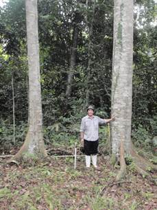 22 years old planted Shorea leprosula at a gap-cluster planting block (Dbh = 64 cm, Height = 40 m)